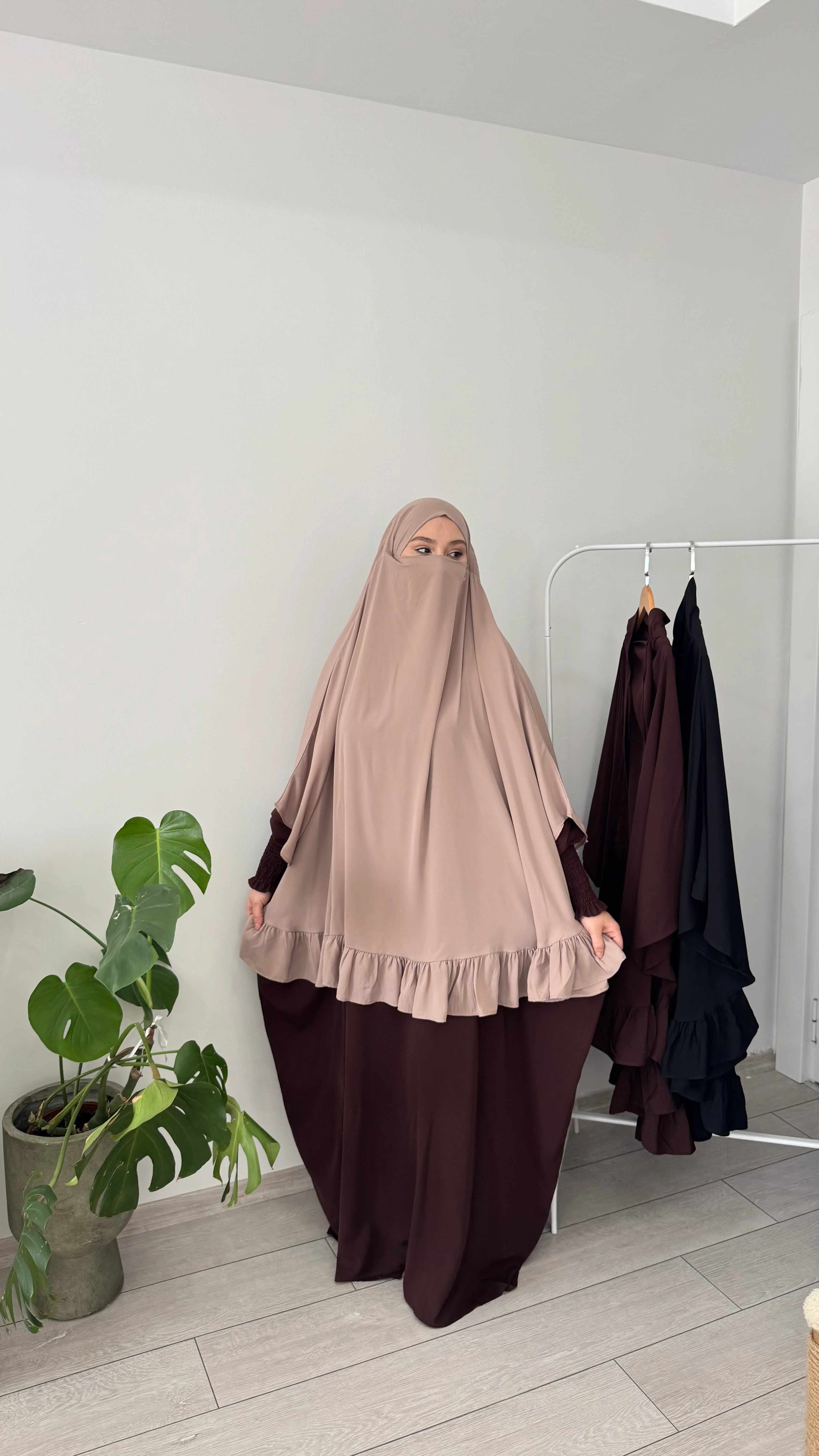 Ay Nakışlı Abaya + Jile - KAHVERENGİ